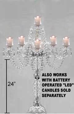 G46-VOTIVE/CANDLE-536-6/set of 5 Candelabras Candelabras & Centerpieces Candelabras & Centerpieces This magnificent candelabra IS ALL 100% CRYSTAL. 100% Crystal Chandelier. Nothing is quite as elegant as the fine crystal chandeliers that gave sparkle to brilliant evenings at palaces and manor houses across Europe. This beautiful chandelier is decorated with 100% crystal that capture and reflect the light of the candle bulbs, each resting in a scalloped bobache. The crystal glass arms of this wonderful chandelier give it a look of timeless elegance that is sure to lend a special atmosphere in any home. H.33" W.24" 6 cups-, holds real candles. Note: This candelabra comes with the candle-holding votive cups that allows you to change your candelabra from lightbulbs to candles. It simply screws into the bulb socket and instantly becomes a candle holder. (candle not included) **SPECIAL SIZES AVAILABLE UPON REQUEST**
