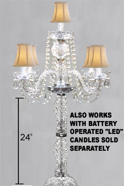 G46-VOTIVE/SC-536-5 /set of 5 Candelabras Candelabras & Centerpieces Candelabras & Centerpieces This magnificent candelabra IS ALL 100% CRYSTAL. 100% Crystal Chandelier. Nothing is quite as elegant as the fine crystal chandeliers that gave sparkle to brilliant evenings at palaces and manor houses across Europe. This beautiful chandelier is decorated with 100% crystal that capture and reflect the light of the candle bulbs, each resting in a scalloped bobache. The crystal glass arms of this wonderful chandelier give it a look of timeless elegance that is sure to lend a special atmosphere in any home. Shades included a46-sc/536/5. Note: This candelabra comes with the candle-holding votive cups that allows you to change your candelabra from lightbulbs to candles. It simply screws into the bulb socket and instantly becomes a candle holder. (candle not included) **SPECIAL SIZES AVAILABLE UPON REQUEST**