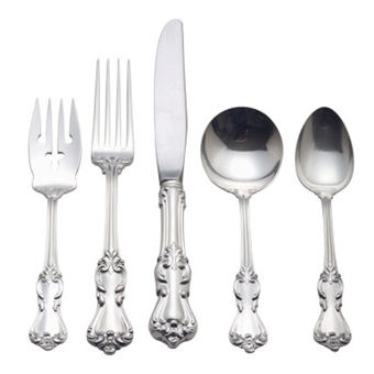 Marlborough’s graceful, scalloped profile and delicate scrollwork bespeaks a timeless elegance that complements any table setting. Includes a teaspoon, place fork, place knife, salad fork and cream soup spoon.