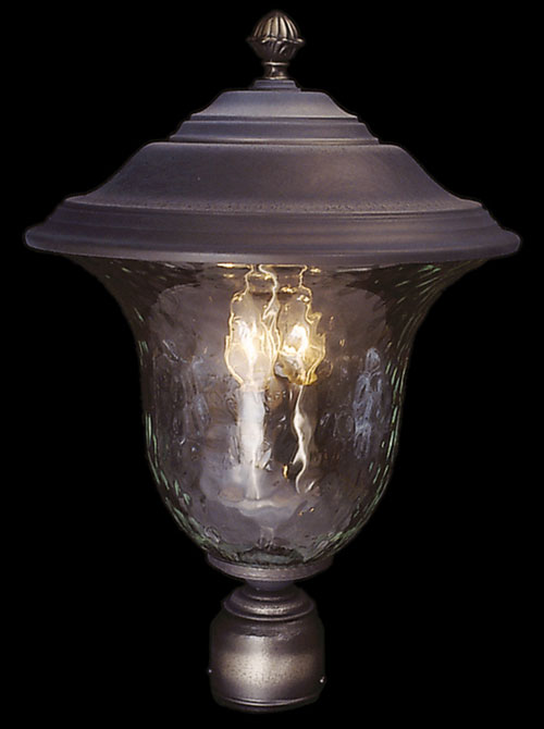 Hammered hand-blown glass and distressed metal are a perfect complement to the exterior textures of wood, stucco, and brick, and the glass also refracts the light disguising the bulb filament. This piece is wonderfully constructed of all brass components and the distressed bronze and iron finishes, along with Raw Copper, will hold up in any outdoor environment.