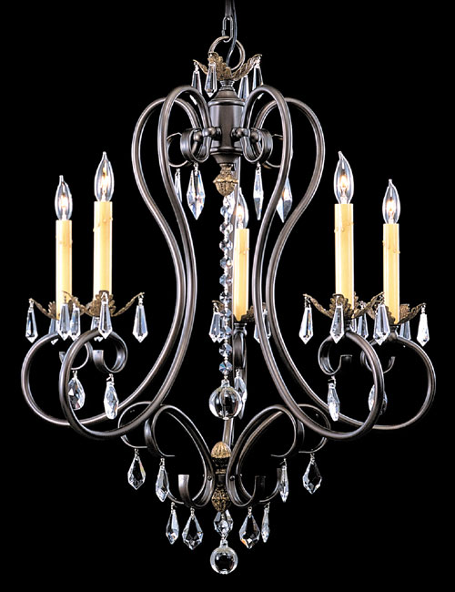The wavy and curving stems act as both the arms and carriage of these chandeliers creating an illusion that they are floating instead of hanging. The metal finish on the frame is our Mahogany Bronze, the leaf accents are finished in Bronzed Gold Leaf, and the crystal is Austrian. The transcendence of these organic designs is evidenced by their ability to complement a setting that is informal or formal, transitional or traditional.