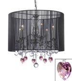 Crystal Chandelier Chandeliers With Large White Shade and Pink Crystal Hearts! H 19.5" x W 18.5"
