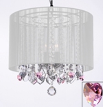 Crystal Chandelier Chandeliers With Large White Shade and Pink Crystal Hearts!