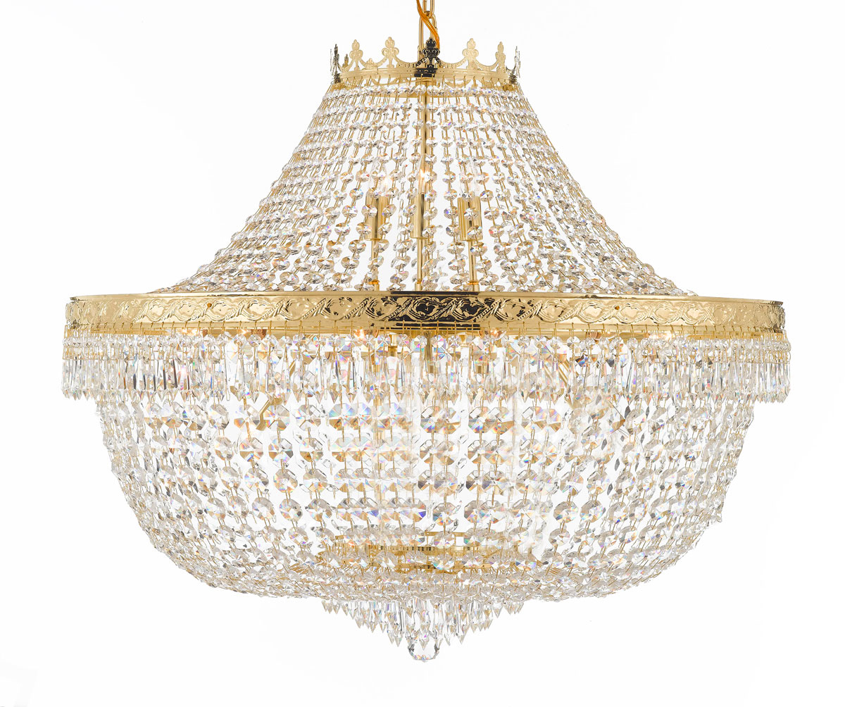 100% CRYSTAL CHANDELIER, this Empire chandelier is characteristic of the grand chandeliers which decorated the finest Chateaux and Palaces across Europe and reflects a time of class and elegance which is sure to lend a special atmosphere anywhere it is placed!